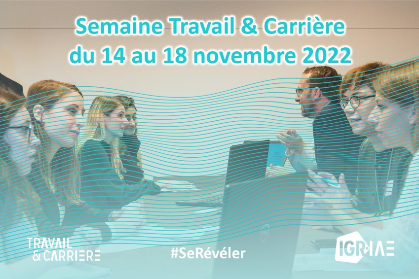 Ateliers professionnels, conférences, rencontres entreprises, la prochaine semaine TRAVAIL et CARRIERE aura lieu du 14 au 18 novembre 2022.